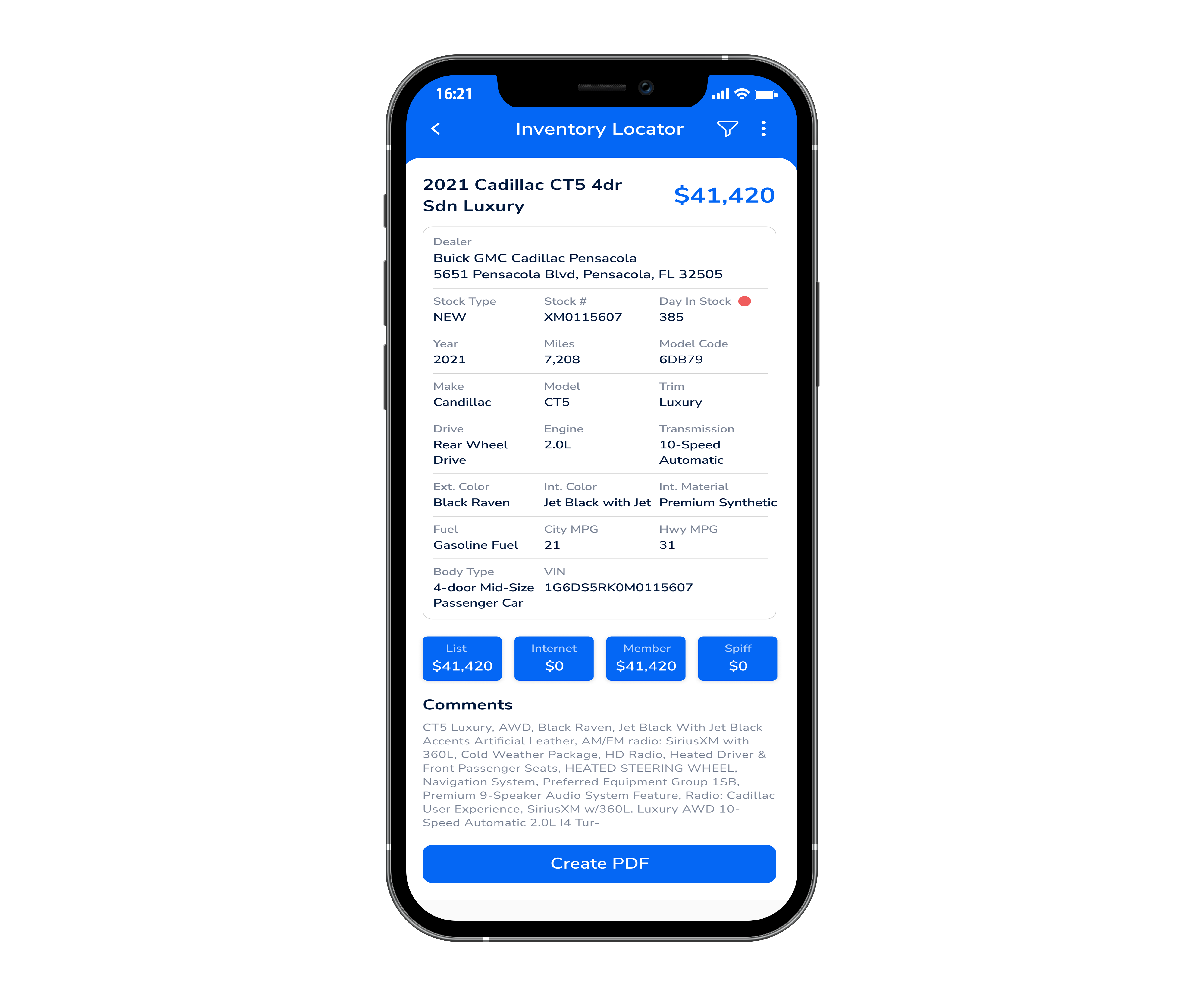 Create digital brochures with the click of a button and send them directly to customers. Sales people also capture mobile numbers and the email address of prospective customers, their information is also loaded directly to your dealership's DMS.